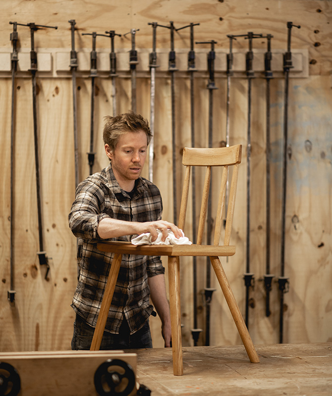 Gareth takes inspiration from walking the streets of Manchester admiring the architectural details — from the pitch of a roof to the curve of a window frame — details shaped by generations of craftspeople. Using British timber sourced locally, he celebrates the material’s history, allowing the wood to speak while creating pieces intended to be enjoyed, used well, and passed down.