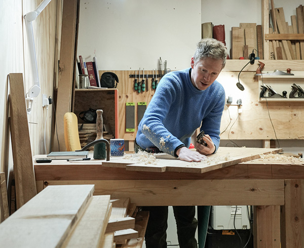 Growing up with an artist father, Gareth searched for the best way to express himself though design, finding his ‘eureka’ moment during Covid when he set up a simple gazebo workshop in his garden. Proudly self-taught, he has honed traditional woodworking skills through many dedicated hours at the bench.