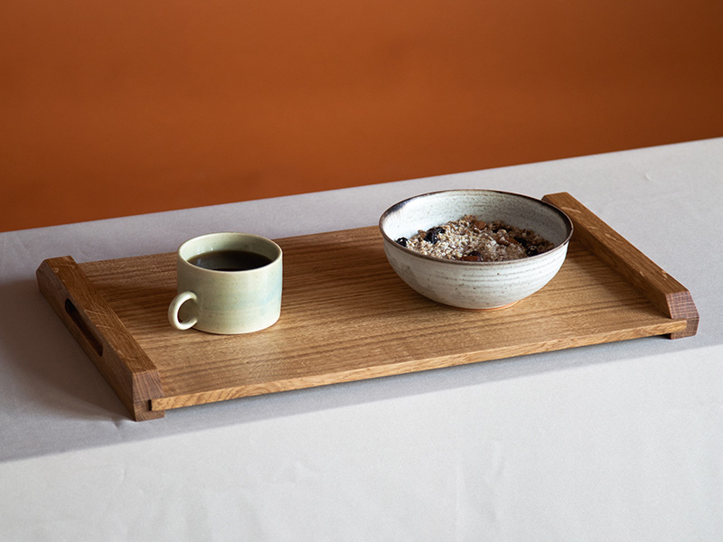 An understated, minimalist design tray made out of English quarter sawn oak, the highest quality cut of wood available.