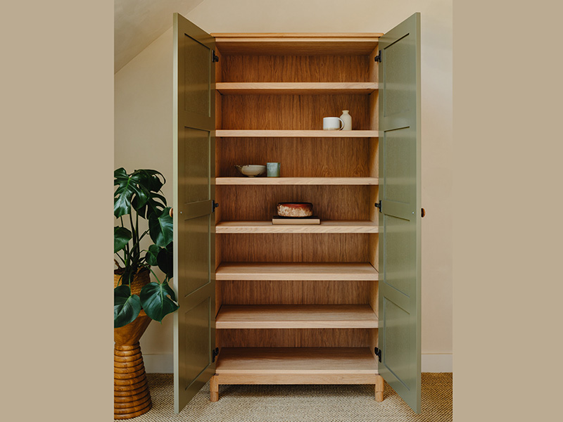 A scaled down version of the ‘Ted Larder’ with adjustable shelving. Size, colour and shelf layout can be specified making this piece incredibly versatile. Available also as a wardrobe.